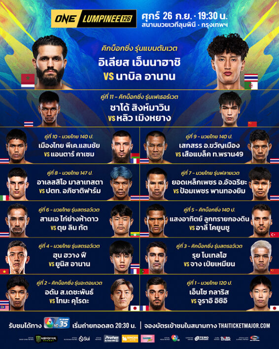 เตรียมตัวให้พร้อมสำหรับความมันส์ระดับโลก! ศึก ONE ลุมพินี 126 จัดเต็มความสนุกให้แฟนหมัดมวยทั่วโลกในวันศุกร์ที่ 26 กันยายนนี้ โดยจะมีการถ่ายทอดสดจากสนามมวยเวทีลุมพินี (รามอินทรา) ตั้งแต่เวลา 19.30 น.