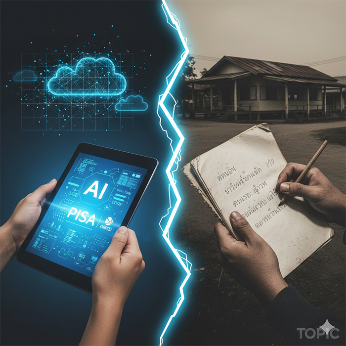 การประเมิน PISA (Programme for International Student Assessment) ซึ่งจัดโดย OECD ถือเป็นมาตรวัดคุณภาพการศึกษาที่ทั่วโลกยอมรับ ผลการประเมินรอบที่ผ่านมาได้ส่งสัญญาณเตือนอย่างชัดเจนถึง “วิกฤตคุณภาพ” และ “ความเหลื่อมล้ำอย่างรุนแรง” ในกลุ่มนักเรียนไทย โดยข้อมูลจาก PISA ชี้ว่ามีความแตกต่างของคะแนนห่างกันเกือบ 200 คะแนน ระหว่างนักเรียนกลุ่มที่มีโอกาสทางการศึกษามากที่สุดและกลุ่มที่ด้อยโอกาสที่สุด