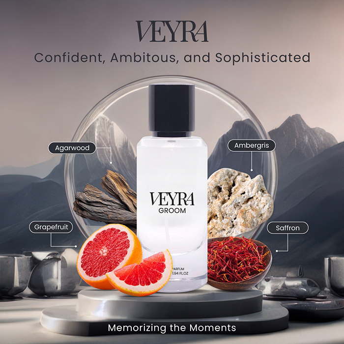 - กลิ่น : VEYRA GROOMเวฬาแห่งความสำเร็จ (มั่นใจ, มุ่งมั่น) โทนกลิ่นหลัก : แมนดาริน, ลาเวนเดอร์, อำพันทะเล, ไม้กฤษณา
