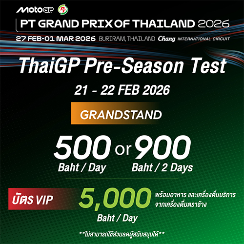 - โมโตจีพีไทย 2026 เคาะแล้ว ‘ตรึงราคาเดิม’ พร้อมอัดฉีดสิทธิ 3-in-1 ชมฟรี Test ระดับโลก! เตรียมกดบัตร 11 พ.ย. นี้